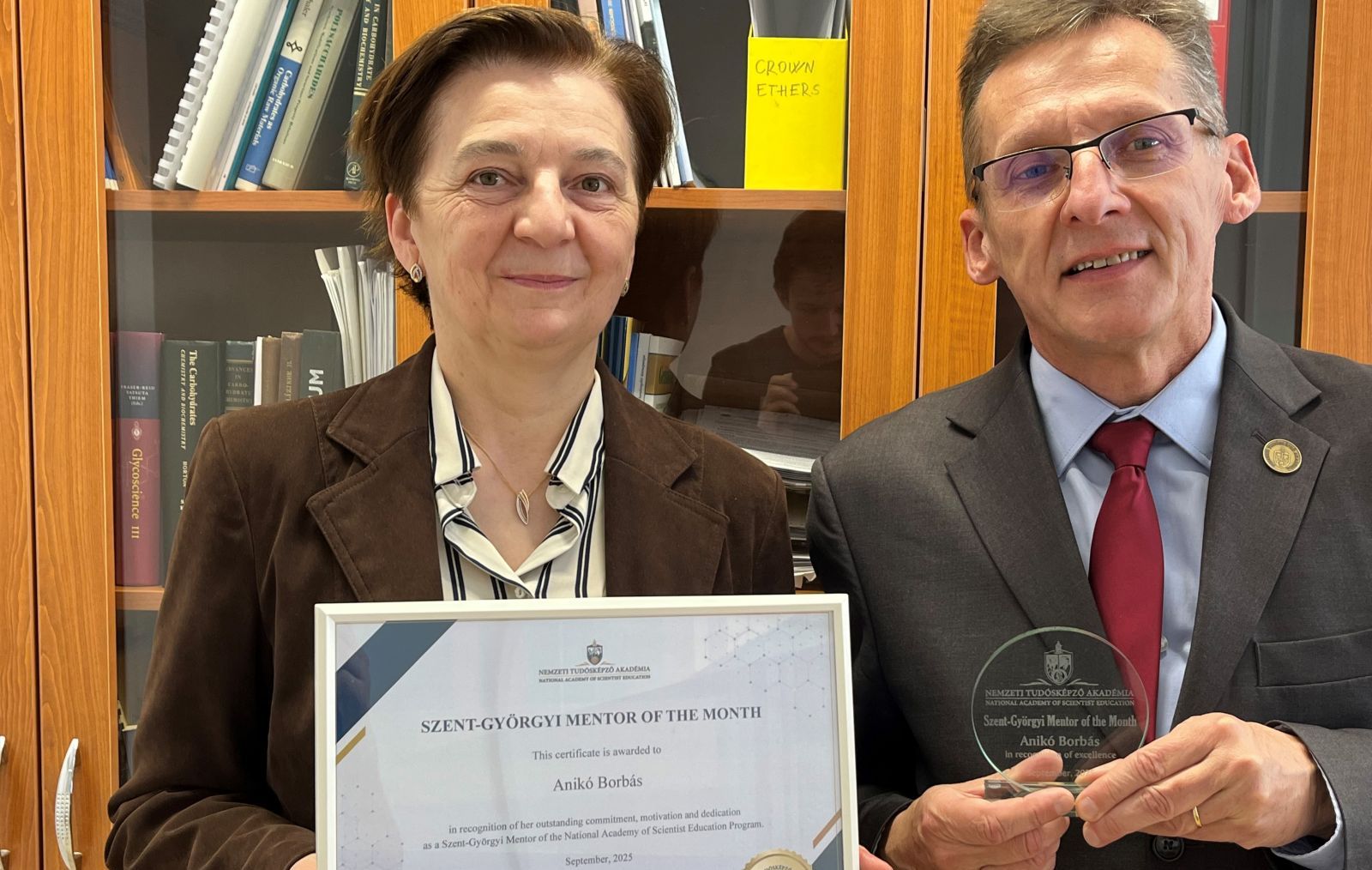 A Debreceni Egyetem Gyógyszerésztudományi Karának Gyógyszerészi Kémia Tanszékét vezeti, és közben a karnak is közkapcsolati dékánhelyettese. Munkacsoportjában az egyik legtehetségesebb Szent-Györgyi hallgatót mentorálja, aki ennek köszönhetően már négy Q1-es közleményt jegyez társszerzőként. Prof. dr. Borbás Anikó Kiváló Mentor díjat vehetett át a Nemzeti Tudósképző Akadémia vezetőitől.