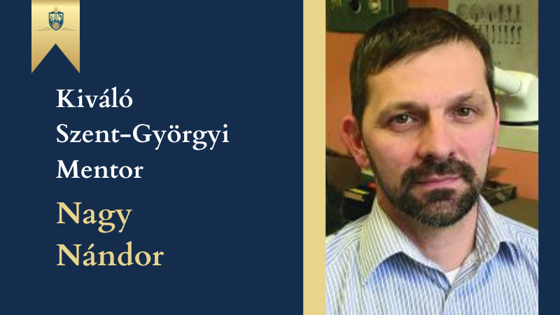 Munkacsoportja egyedülálló fejlődésbiológiai kutatásokat végez, amik segíthetik a veleszületett bélműködés-zavarok megértését és őssejt-terápiás kezelését. Ezt a témakört kutatják mentorált hallgatói is, akik társszerzőként már több publikációt is jegyeznek neves lapokban. Dr. Nagy Nándor, a Semmelweis Egyetem Anatómiai, Szövet- és Fejlődéstani Intézetének egyetemi tanára Kiváló Szent-Györgyi Mentor díjat vehetett át a Nemzeti Tudósképző Akadémia vezetőitől.